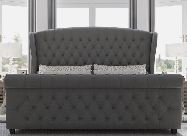 We know that everyone has their own taste. Our sleigh bed frames are available in a variety of luxurious fabrics: